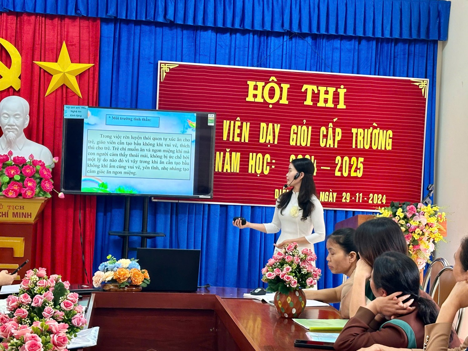 Hội thi giáo viên dạy giỏi cấp trường năm học 2024-2025 của tmaamf non Diễn Vạn đã thành công tốt đẹp. Hội thi đã diễn ra một cách khách quan, nghiêm túc, chất lượng và đúng quy định. Giáo viên đã thể hiện sự cố gắng và quyết tâm cao, thể hiện được tài năng sư phạm, trình độ chuyên môn sáng tạo, tự tin giảng dạy, đam mê nghề nghiệp, không ngừng phấn đấu để nâng cao tay nghề.